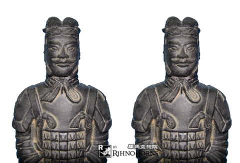 實際拿一張照片來當範例,這張兵馬俑原本是利用藍幕當背影拍攝出來的,經過去背加上白底可以看出有無使用 Antialias 的效果,下圖左邊是原去背後,右邊則為效果後,點擊放大會看得比較清楚一點。