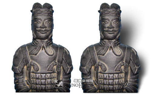 範例圖像如下,左邊的兵馬俑未加上斜影,右邊則有。