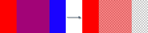 這個 Paint.NET 外掛的功能很簡單,就是將圖片或是框選區中的色彩抽去所選擇的前景色,看圖說故事會比較好了解,範例如下,將左方的原圖使用 StripPrimaryColor 抽去籃色後即成為右方的圖片,紫色成為半透明的紅色,藍色則完全透明。